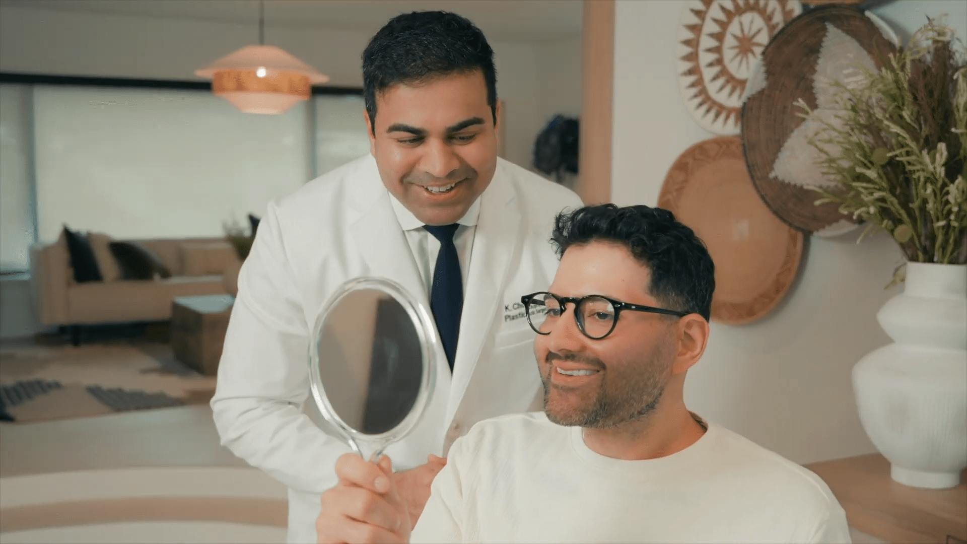 Dr. Chopra touching patient's neck
